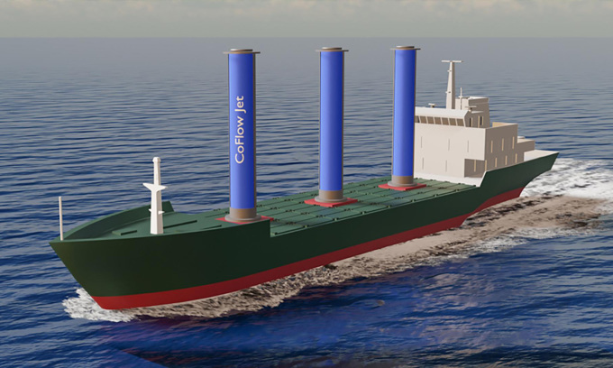 Mô phỏng tàu trang bị cột buồm hình trụ. Ảnh: CoFlow Jet