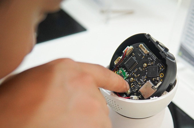 Một người đang xem mẫu camera sử dụng chip nguồn do doanh nghiệp Việt phát triển, tháng 10/2024. Ảnh: Lưu Quý