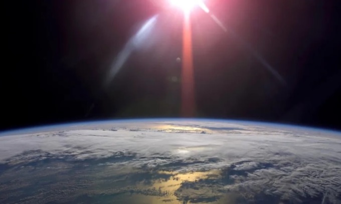Mặt Trời mọc phía trên Trái Đất trong ảnh chụp từ trạm ISS. Ảnh: NASA