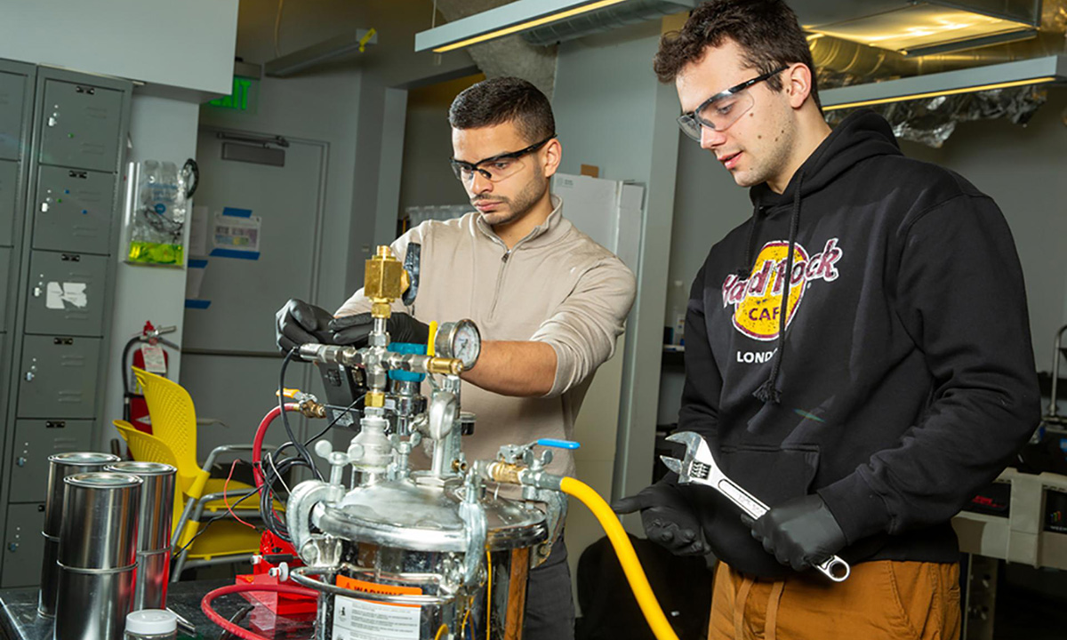 Hai nhà nghiên cứu MIT Aly Kombargi (trái) và Niko Tsakiris (phải) với lò phản ứng hydro mới. Ảnh: Tony Pulson