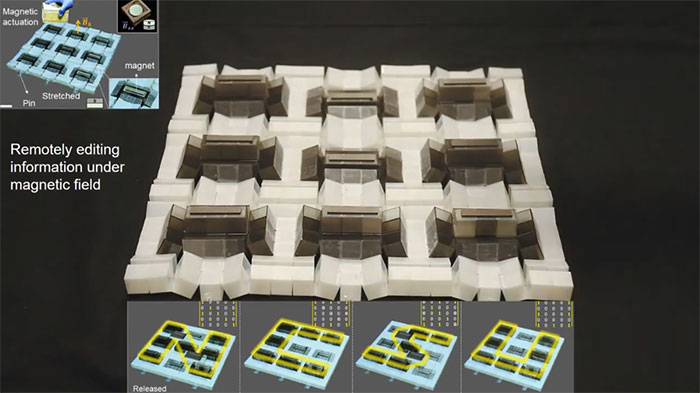 Máy tính thử nghiệm không có bất cứ bộ phận điện tử nào. Cỗ máy gồm 64 khối polymer thể tích 1cm3 liên kết với nhau, có thể sắp xếp lại để lưu trữ, truy xuất và xóa dữ liệu. Tương tự kirigami, máy tính có thể được điều chỉnh thành nhiều cấu hình và trạng thái khác nhau.