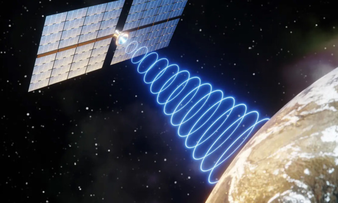 Mô phỏng vệ tinh truyền dữ liệu xuống Trái Đất. Ảnh: iStock/Dragon Claws