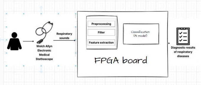 Thiết bị do nhóm sinh viên trường Điện - Điện tử, Đại học Bách khoa Hà Nội nghiên cứu, chế tạo để hỗ trợ chẩn đoán bệnh lý hô hấp dựa trên phân tích tiếng thở, xử lý bằng FPGA kết hợp trí tuệ nhân tạo (AI). Thiết bị này có khả năng ghi lại và phân tích âm thanh hô hấp thông qua ống nghe điện tử tích hợp cảm biến. Dữ liệu thu thập được chuyển tới phần mềm xử lý bằng trí tuệ nhân tạo (AI) để nhận diện các đặc điểm bất thường trong âm thanh, giúp phát hiện sớm các bệnh lý như viêm phổi, hen suyễn và bệnh phổi tắc nghẽn mạn tính (COPD).