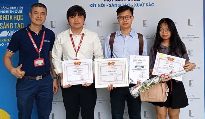 Nhóm sinh viên tại cuộc thi sinh viên nghiên cứu khoa học và sáng tạo của Đại học Bách khoa Hà Nội năm 2024. Ảnh: NVCC