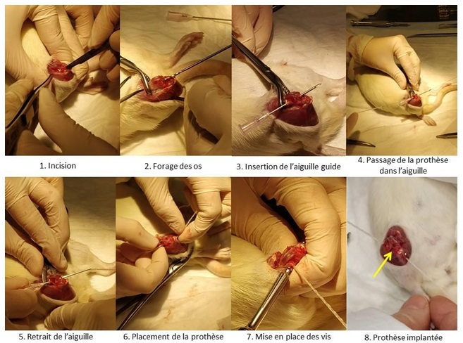 Quy trình cấy ghép dây chằng nhân tạo trên chuột thí nghiệm. Ảnh: Nhóm nghiên cứu