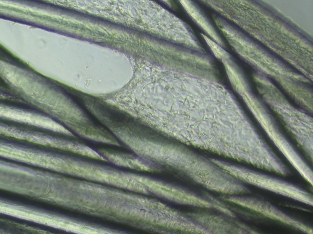 Bó sợi polymer sinh học của dây chằng nhân tạo được thử nghiệm hoạt tính sinh học trên tế bào mô sợi trong ống nghiệm sau 10 ngày, cho thấy có sự bám dính và phát triển của cụm tế bào rõ rệt. Ảnh: Nhóm nghiên cứu