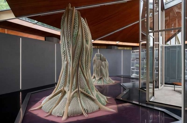Không dừng lại ở quy mô phòng thí nghiệm, các nhà nghiên cứu đã phối hợp cùng giới kiến trúc để đưa vật liệu sống này vào thực nghiệm không gian thật. Tại Triển lãm Kiến trúc Venice Biennale, hai khối trụ sống cao tới ba mét đã được lắp đặt trong gian trưng bày của Canada, sử dụng vật liệu chứa cyanobacteria. Mỗi khối có thể hấp thụ tới 18 kg CO₂ mỗi năm – tương đương khả năng hấp thụ của một cây thông 20 năm tuổi. Trong khi đó, tại Milan, dự án “Dafne’s Skin” đã thử nghiệm lớp phủ sinh học chứa vi sinh vật lên các bề mặt gỗ truyền thống, tạo nên lớp patina xanh rêu sống động, đồng thời là một cơ chế hấp thụ CO₂ theo thời gian.