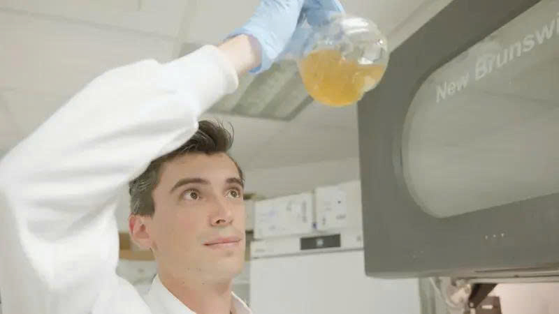 Nhà khoa học đang kiểm tra sự phát triển của dòng vi khuẩn E. coli trong phòng thí nghiệm Wallace (nguồn: Đại học Edinburgh).