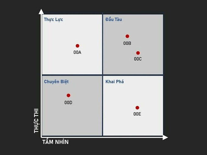 Cách Vinasa phân loại các doanh nghiệp công nghệ số dựa trên khả năng thực thi và tầm nhìn. Ảnh chụp màn hình